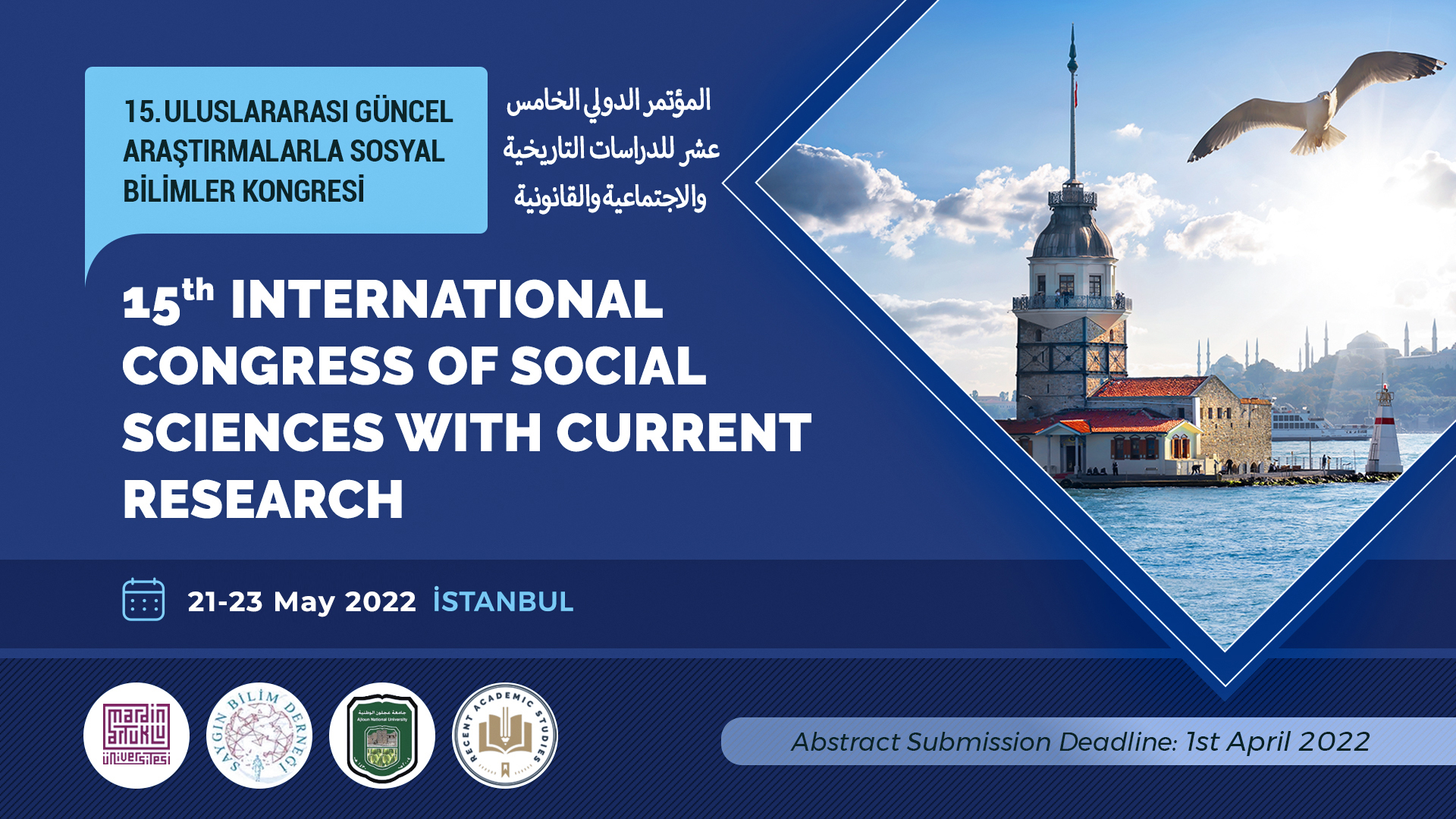 15. Uluslararası Güncel Araştırmalarla Sosyal Bilimler Kongresine sadece sözel bildiri veya özel konulu çalıştay ile iştirak etmek mümkündür.